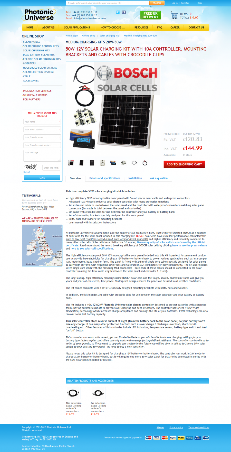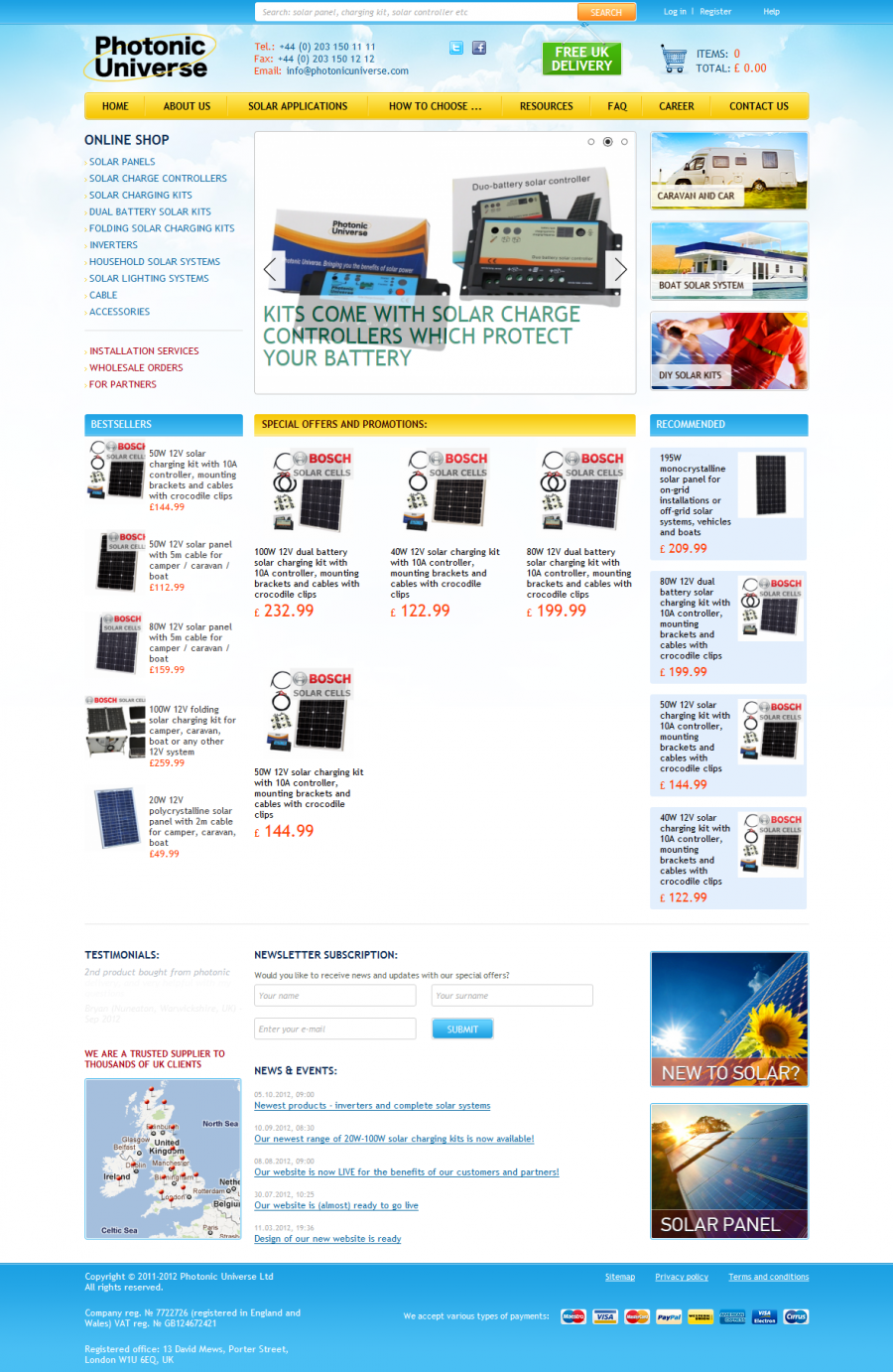 Интернет магазин солнечных батарей и аксессуаров «Photonic Universe», г. Лондон.